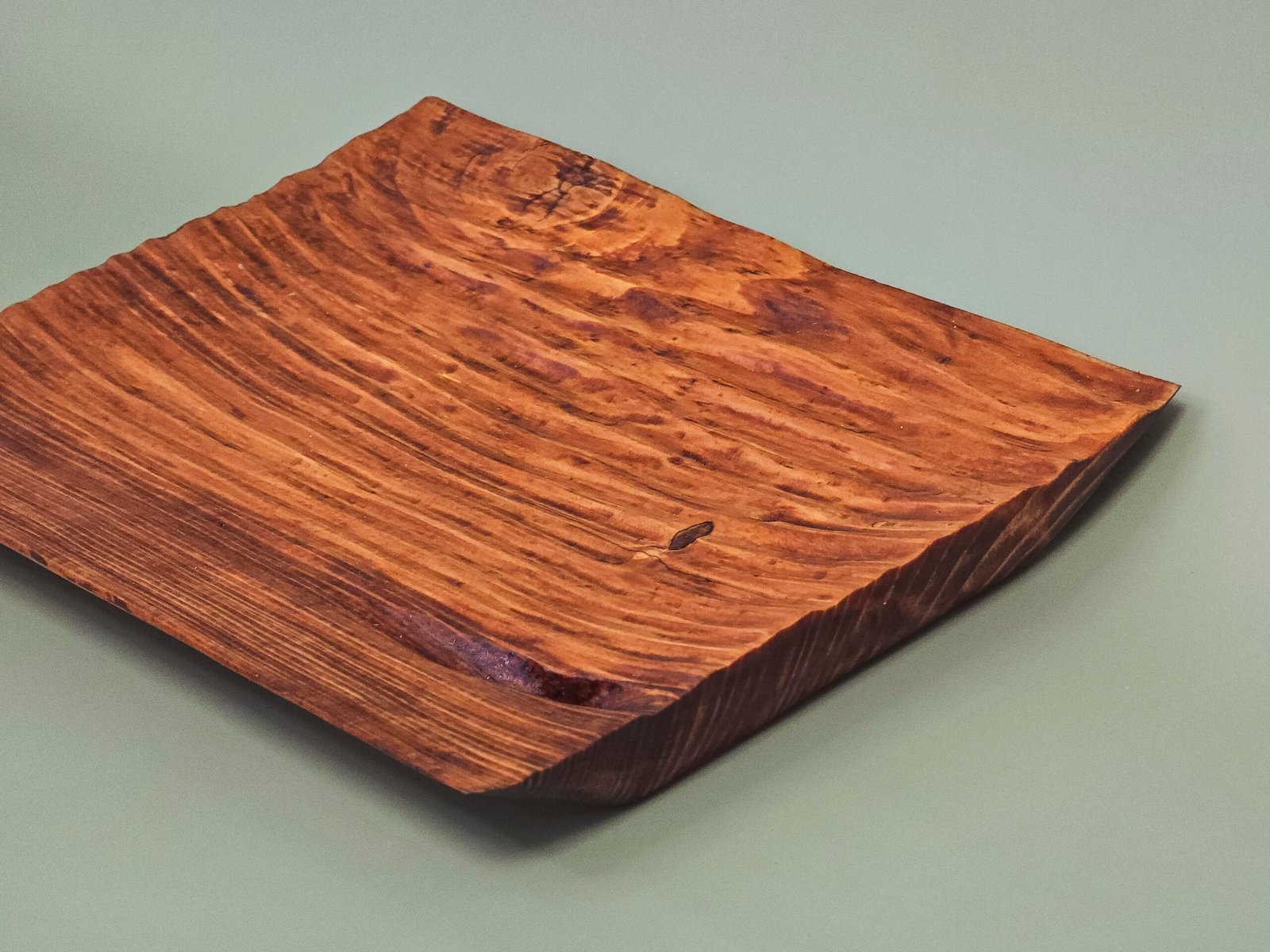 Medinis lėkštutė užkandžiams. Įkvėptos gamtos formų. Apdirbimas išryškina itin nuostabų medžio gijų raštą.