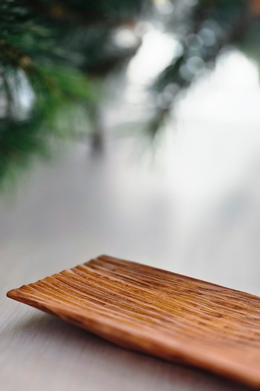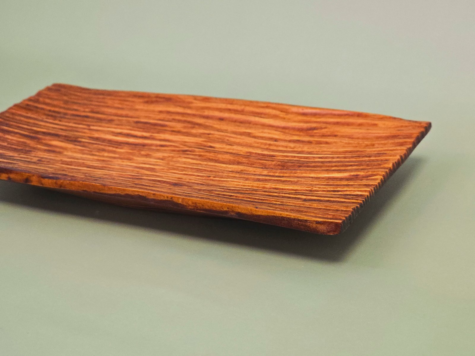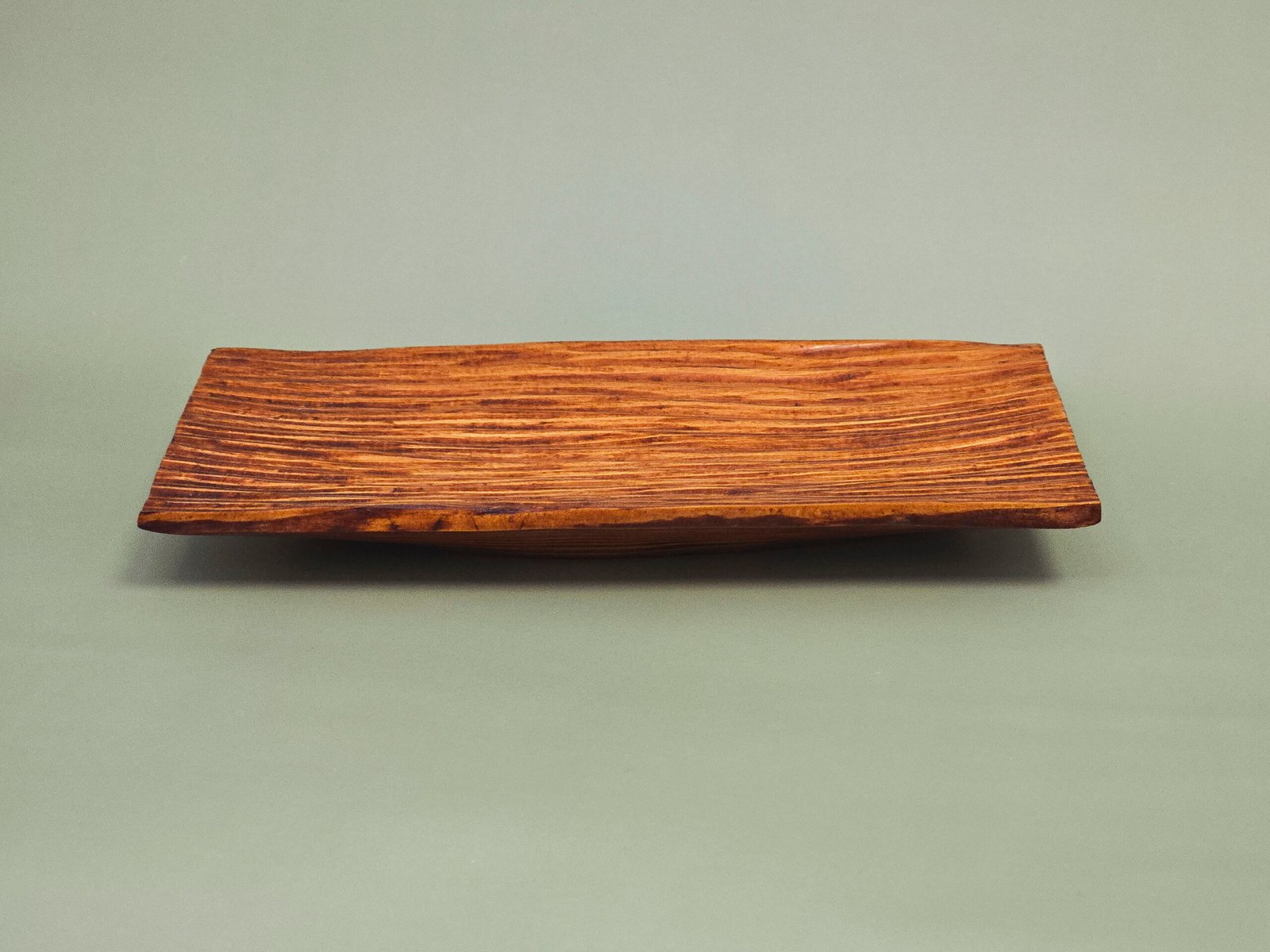 Medinis lėkštutė užkandžiams. Įkvėptos gamtos formų. Apdirbimas išryškina itin nuostabų medžio gijų raštą.