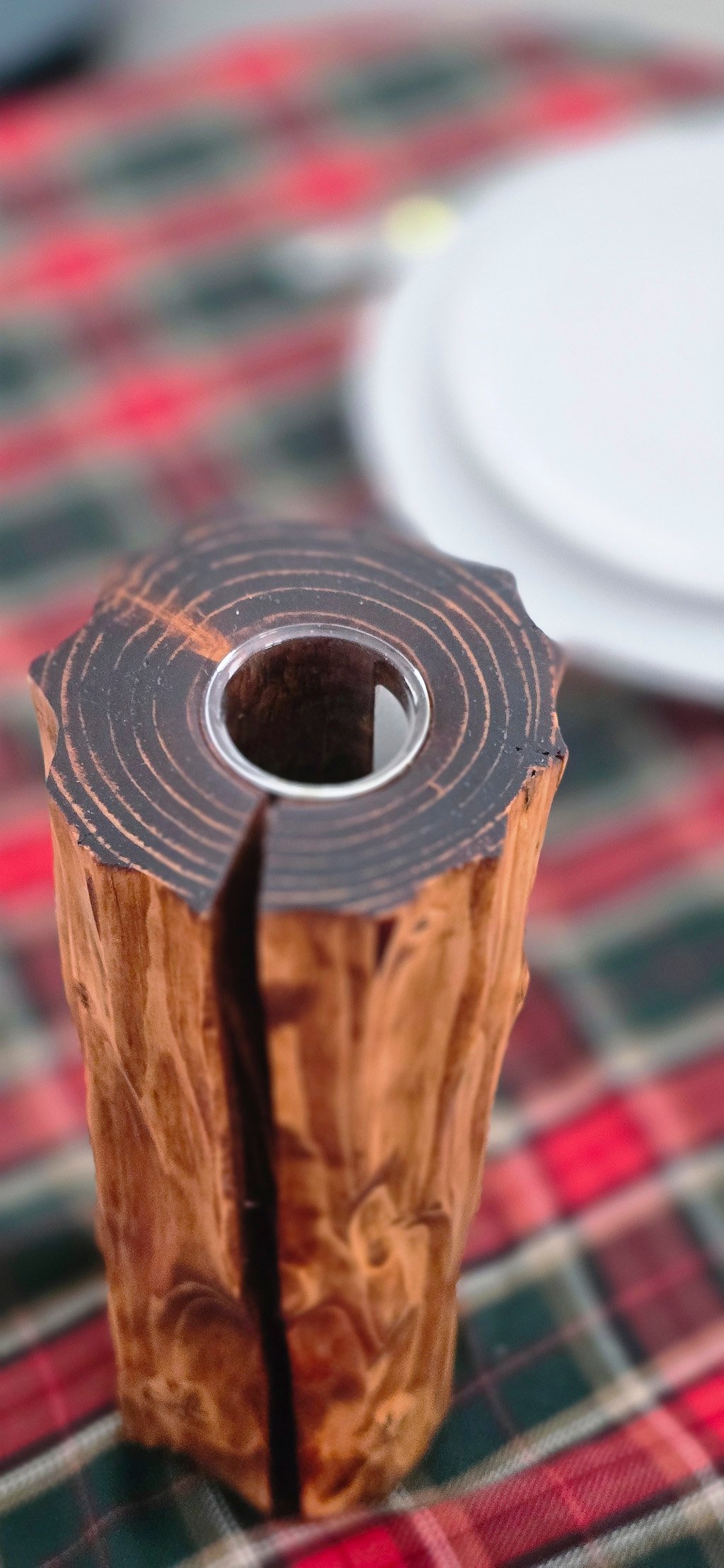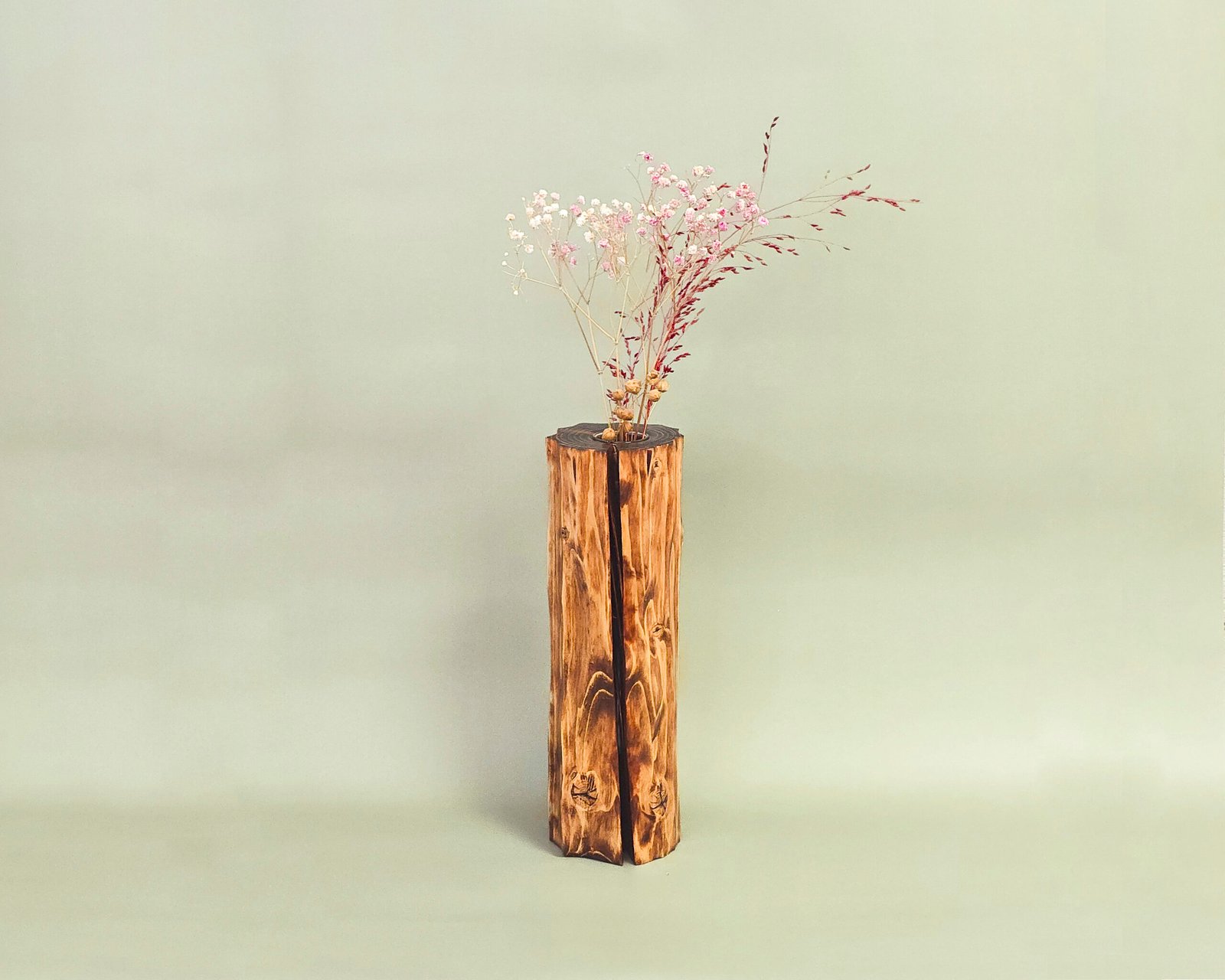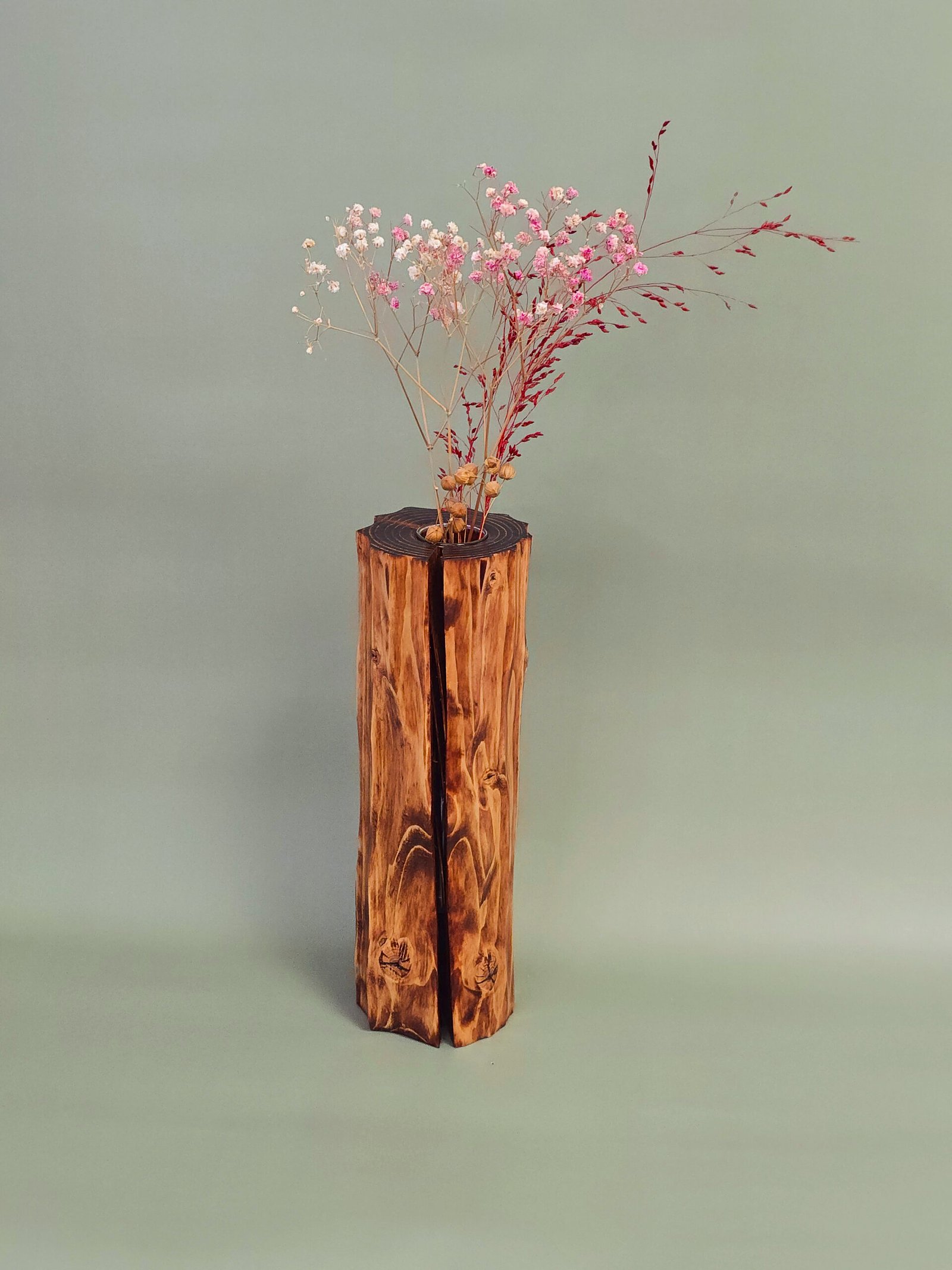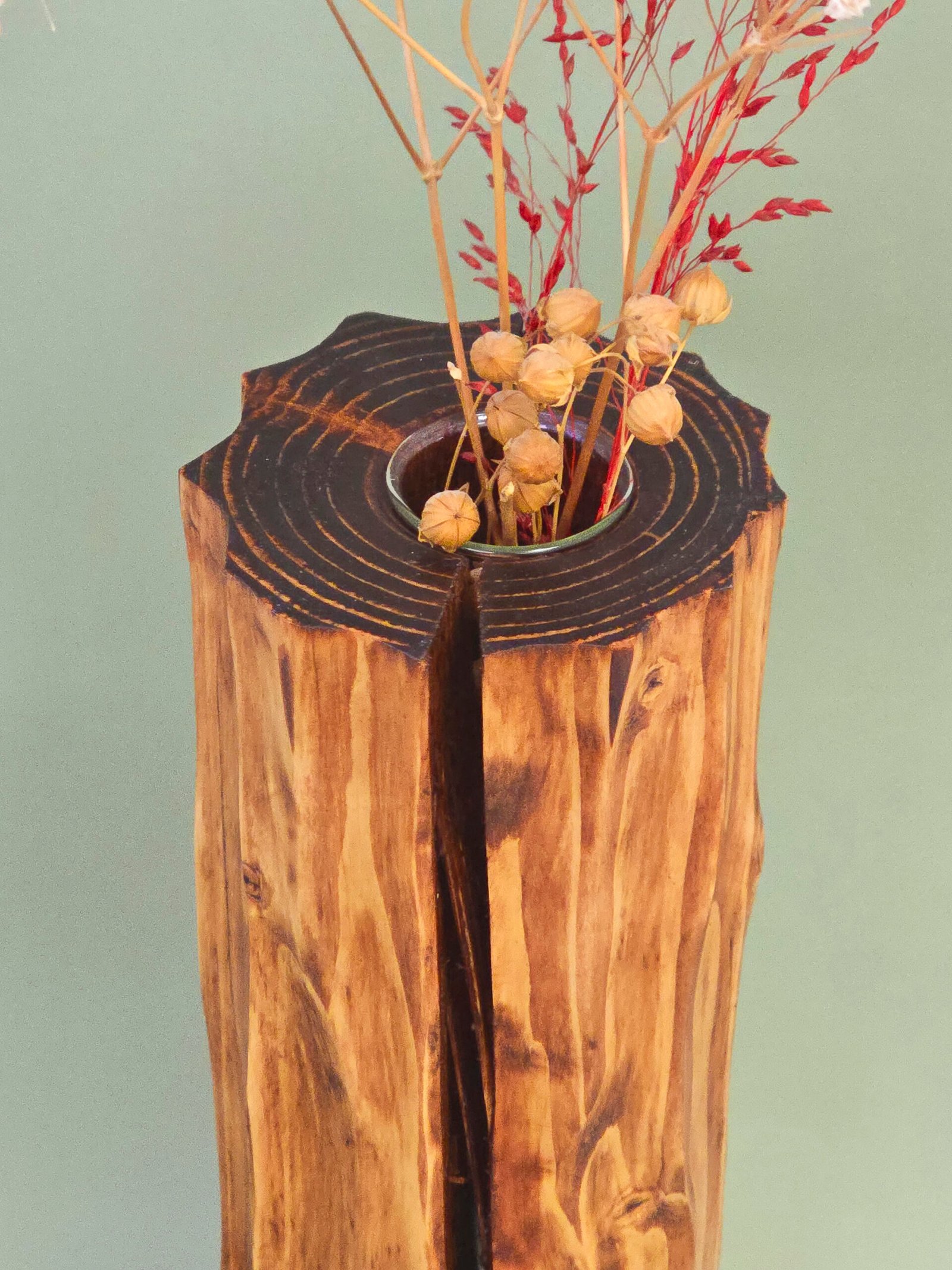Stiklinė kolba apsaugo medieną nuo vandens, todėl galite drąsiai naudoti ją gyvų gėlių merkimui.