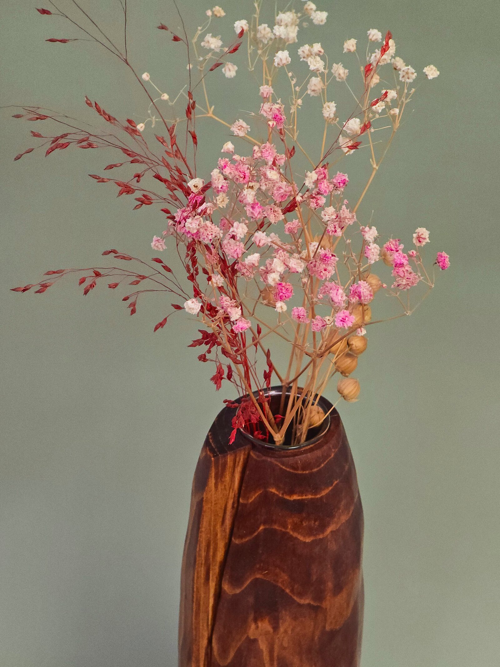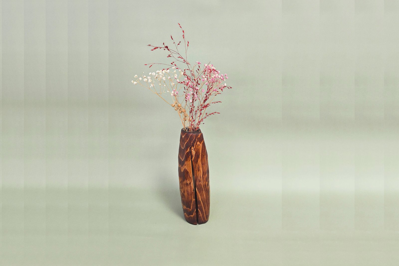 Stiklinė kolba apsaugo medieną nuo vandens, todėl galite drąsiai naudoti ją gyvų gėlių merkimui.