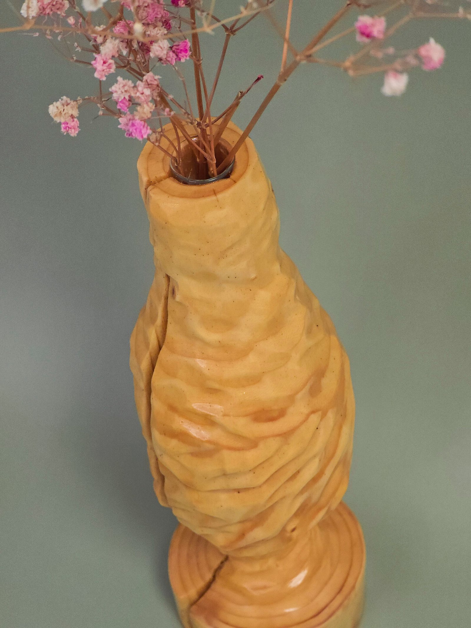 Stiklinė kolba apsaugo medieną nuo vandens, todėl galite drąsiai naudoti ją gyvų gėlių merkimui.